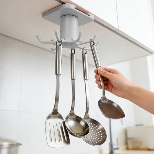 Kitchen Hooks for Hanging Utensils, 360 掳Rotating Under Cabinet Kitchen Hooks, Hanging Utensil Holder for Tools/Towel/Knife(Black