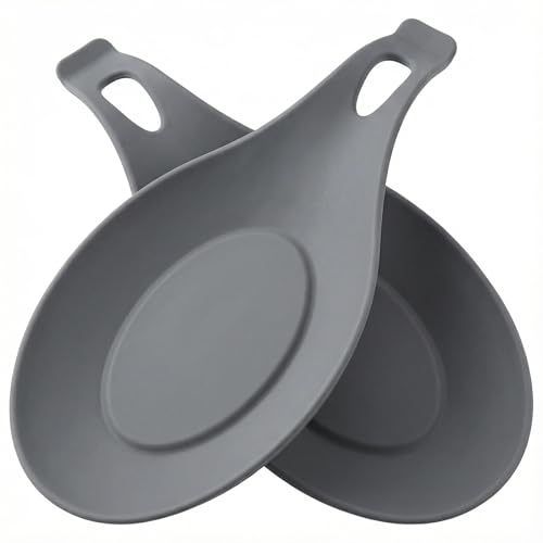 Black Unbreakable Spoon Rest with Drip Pad, BPA-Free Silicone Heat Resistant Kitchen Utensil Holder for Spoons Spatulas Ladles Tongs & More - 2 Pack - by Wave Kitchen