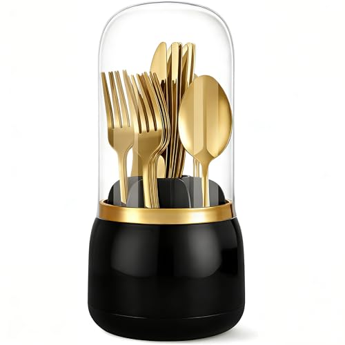 Nigelia Extra Large Kitchen Utensil Holder, 360掳 Rotating Stainless Steel Cooking Utensil Holder for Countertop, 3 Compartment Flatware Organizer & Cooking Caddy with Removable Base锛圔lack锛