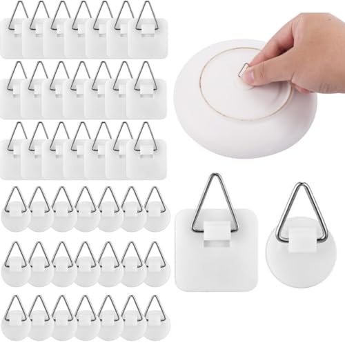 Lexziuo 40PCS Adhesive Wall Hangers - Invisible Picture Hanging Hooks with Strong Adhesion (0.83 Inch) for Wall Art, Decoration, Photo Frames & Display Supplies