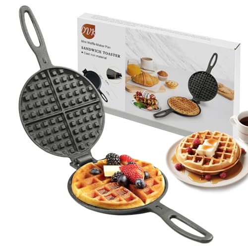 7 Inch Round Cast Iron Waffle Iron Plant Oil Care Two Piece Hinged Non Electric Waffle Maker for Indoor and Outdoor Picnics