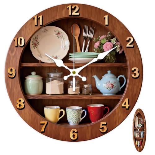 Lafocuse 12 Inch Rustic Wall Clock Annual Rings Design, Tree Stump Farmhouse Wall Clocks Silent Non-Ticking Battery Operated, Vintage Wooden Brown Clocks for Living Room Decor Bedroom Kitchen Office