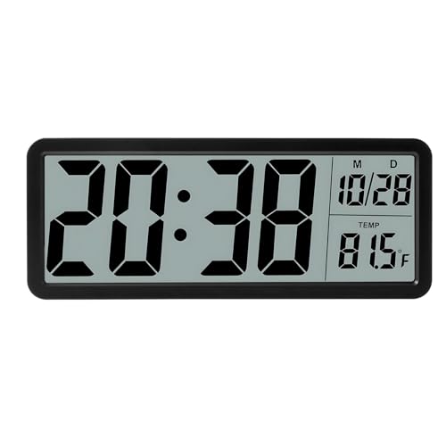 Mee 2ou Digital Wall Clock Battery Operated, 15" Digital Clock Large Display With Date And Day Of Week, Large Number Digital Clock With Temperature, Auto DST, Alarm, Snooze, 12/24-hour For Desk Office