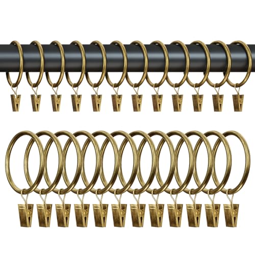 40 Pcs Curtain Rings Antique Brass 1.5Inch Strong Metal Decorative Curtain Ring with Eyelets, Rustproof Drapery Curtain Rod Clips Hangers for Bathroom, Living and Guest Room (1.5inch)