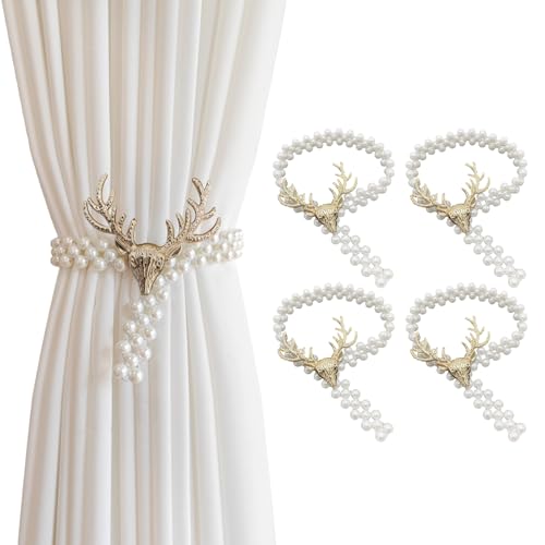 8 Pcs Magnetic Curtain Tiebacks Convenient Drape Tie Backs, Pearl Decorative Rope Holdback Holder for Home, Hotel Window Decoration, Office
