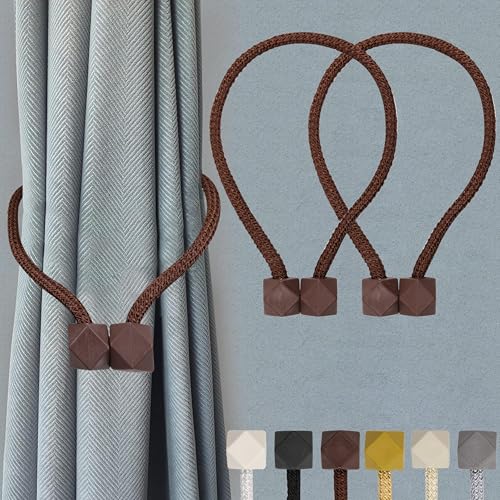 Nieffeiy 2 Pack Magnetic Curtain Tiebacks Rope Modern Handmade Curtain Tie Backs Decorative Drapes Weave Holdbacks for Window D茅cor, Black