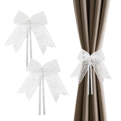 OOTSR Curtain Tiebacks with Transparent Self-Adhesive Hooks, Curtain Holders Window Curtain Rope Holdbacks Curtain Bracelets for Home Office Bedroom Living Room Decoration Window Treatment (White)