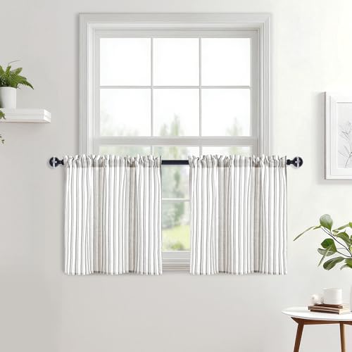 Pitalk Natural Linen Blend Tier Curtains for Kitchen 26 Inch Width by 24 Inch Length