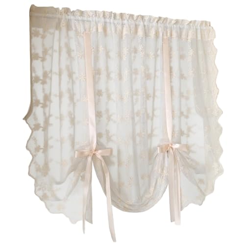 Balloon Curtains, Lace Curtains, 39x49 Inch Floral Embroidered Balloon, Rod Pocket Light Filtering Ruffled Tie up Valances for Windows, Door, Kitchen, Lace