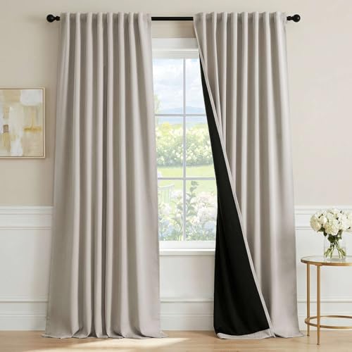 Back Tab 100% Blackout Curtains 84 Inches Long Linen Textured Black Out Curtains Full Light Blocking Thermal Insulated Energy Saving Rod Pocket Back Tab Linen Drapes 52x84 2 Panels Natural Cream