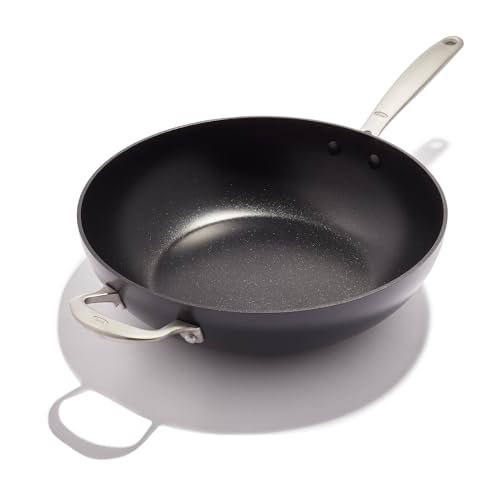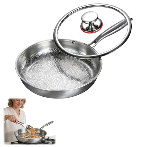 Lazycorner Non Stick Frying Pans Skillet with Lid, 12 Inch Stainless Steel Kitchen Cookware Pots, Non Toxic Healthy Induction Compatible PFAS PTFE PFOA PFOS Free