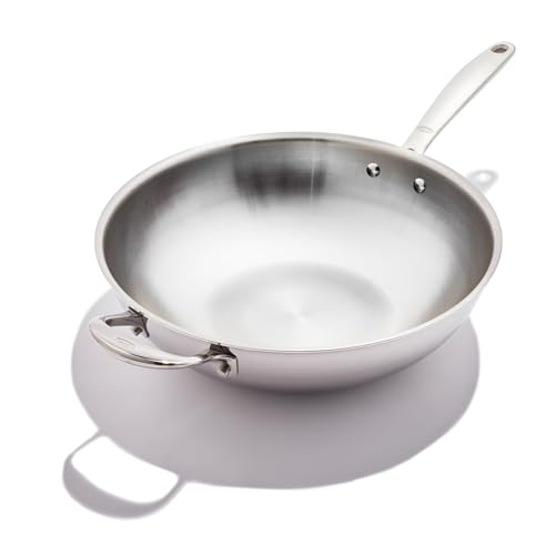 Meyer - SuperSteel Tri-Ply Clad Stainless Steel Wok with Lid, Induction Cooktop Compatible (32cm/12.5in)