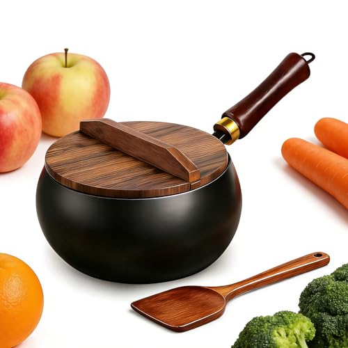 2026 NEW Japanese Cast Iron Pot & Pan Set, Hand-Forged Non-Stick Cookware with Wooden Lid & Spatula, Durable Heavy Duty Iron for Stir Fry, Stew, Induction & Gas Stoves (Wooden lid, 8 in)