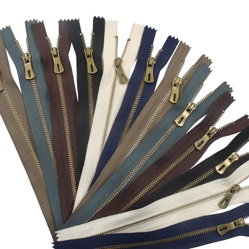 Leekayer #8 12 Inch Antique Brass Zippers for Jackets Sewing Coats Crafts Brown Separating Jacket Zipper 30.48 cm Metal Zipper Heavy Duty (12" Anti-Brass)