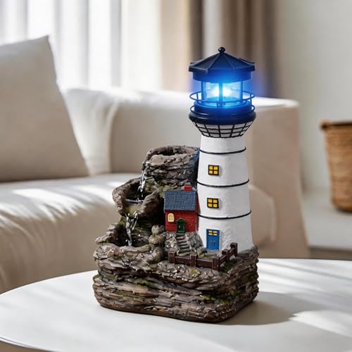 Cascading Indoor Tabletop Water Fountains with LED Light - Rockery Waterfall Fountain - Quiet and Relaxing Water Sound - Small 9.7 Inch Desktop Size - Home/Office Decor