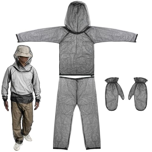 Mosquito Net Suit, Breathable Mesh Mosquitoes Jacket Hood & Pants & Mitts & Socks Sets for Protecting Hunting Fishing Men Women