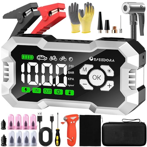 Preciva 8000mAh Jump Starter - 8000A Peak Car Battery Charger with Smart Air Compressor (150PSI), Tire Repair Kit, Power Bank, Digital Gauge & LED Emergency Light for Car, Truck, Motorcycle