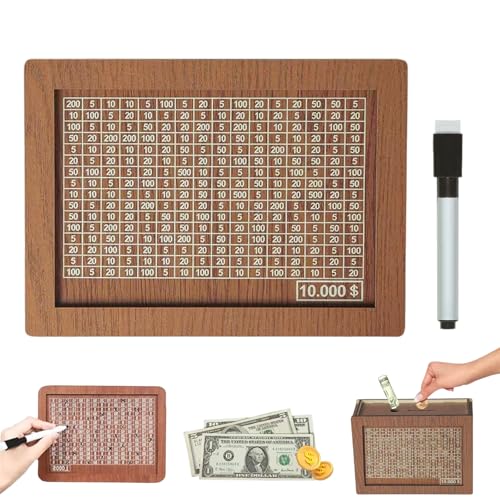 Lukinuo Cash Saver Box Wooden Money Saving Box Black One Piece Cash Vault with 10000 5000 3000 2000 1000 500 Money Saving Target Wooden Cash Vault with Counter Reusable Money Box for Boys Girls Adult