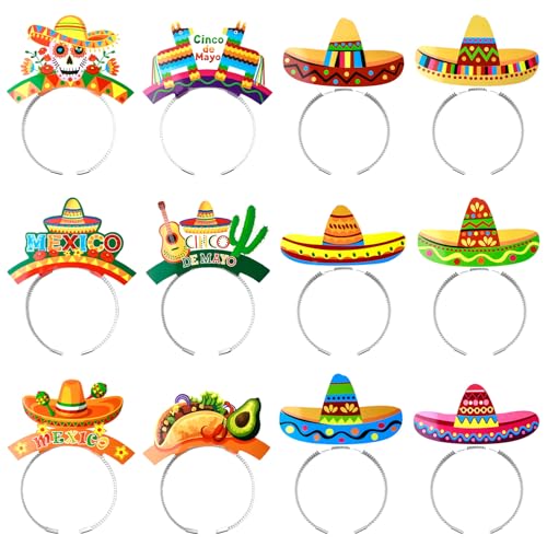 ZWLIYCHN 12Pcs Cinco de Mayo Sombrero Headbands Mexican Cardboard Headband Fiesta Head Topper for Mexican Party Supplies