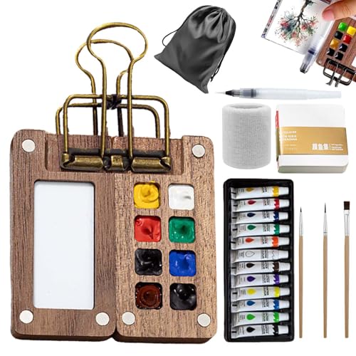 Tobios Watercolor Kit, 2025 New Tobios Mini Watercolor Kit, Portable Watercolor Travel Sets - 12 Color Mini Paint Kit with Wooden Palette, & Metal Clip, for Artists, Beginners & Painting Enthusiasts (A)