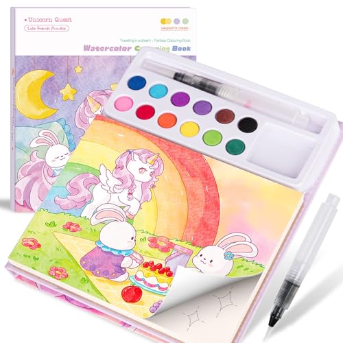 Feishiong 4 Pack Travel Pocket Watercolor Painting Book,DIY 4 Themes16 Watercolor Paintings for relaxation Set Art Craft Gift for Teen and Adults Beginners 12.4 * 8.8''