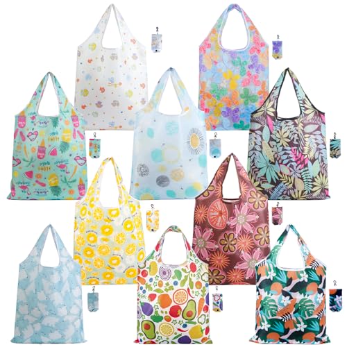 Bouiexye 12 Pack Reusable Grocery Bag Foldable Washable with Storage Pouch Grocery Tote Bags for Shopping Groceries Travel