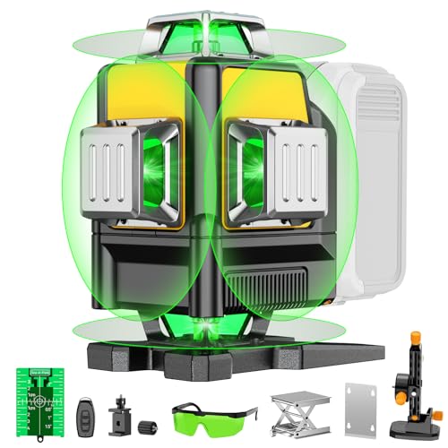 Laser Level with Tripod, 4 x 360掳Self Leveling Laser Level, 16 Lines 4D Laser Measuring Tool Green Lazer Level, for Construction, Ceiling, Tiling, Framing, Home Renovation, Picture Hanging