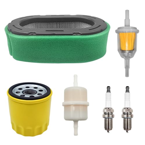 HIFROM Air Filter Pre-Filter Oil Fuel Filter Spark Plug Kit Compatible with John Deere D140 D130 L120 Z425 X130R X135R X165 L118 LA135 MIU11286 GY20575 499486 499486S Lawn Mower