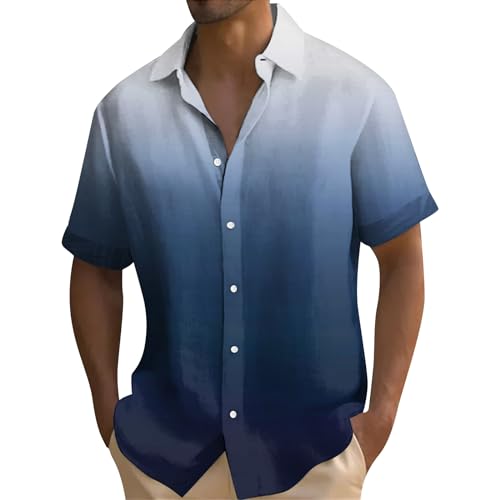Mens Cotton Linen Shirts Button Down Short Sleeve Shirts Classic Casual Summer Hiking Fishing Shirt with Chest Pocket