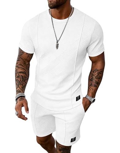 COOFANDY Men's 2 Pieces Linen Set Henley Shirt Short Sleeve and Shorts Summer Beach Yoga Matching Outfits