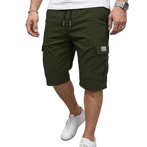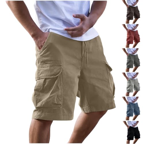 Mens Shorts Cargo Elastic Waist Bermuda Shorts Summer Casual Loose Multi Pockets Workout Shorts Outdoor Jogger Shorts