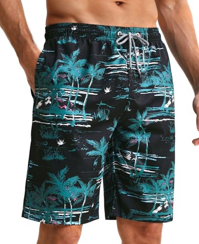Lzzidou Men's Swim Trunks 9 Inch Inseam Bathing Suit Hawaiian Swimsuits Mesh Lining Beach Shorts with Pockets
