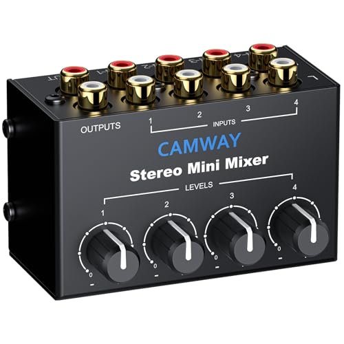 HXBER 4-Channel Passive Mixer Audio Mixer 4 Audio Input to 1 Output Ultra Compact Low Noise for Recording Studio Console Stage Small Club or Bar