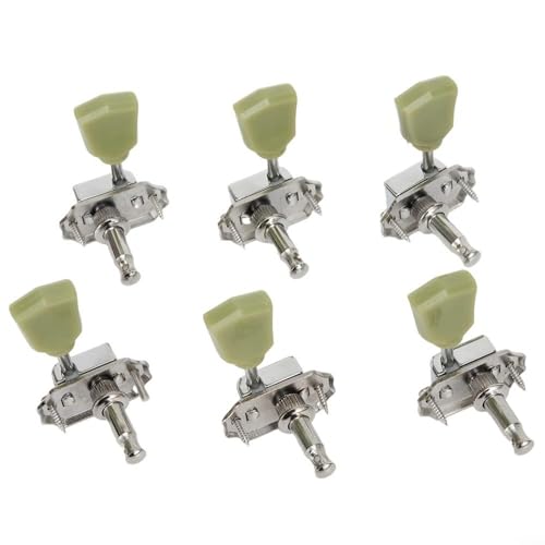 Guyker 6Pcs Guitar Locking String Tuning Pegs (3R + 3L) 鈥 1:15 Vintage Deluxe Style Tuners Key Machine Heads Set with Keystone Knob Replacement for Les Paul Style Electric or Acoustic Guitar - Nickel