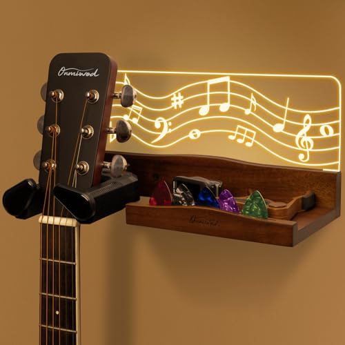 Donner Guitar Wall Mount Shelf, Wood Guitar Hanger Rack with Pick Holder and 2 Hooks for Acoustic, Electric, Bass, Ukulele, Accessories