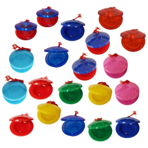 SENJEOK 20 Pack Plastic Percussion Tambourine, 4 Inch Half Moon Musical Tambourines with 4 Bells, Mini Handheld Tambourine for Family, School