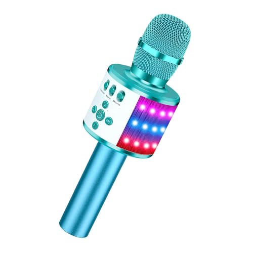 Wireless Bluetooth Karaoke Microphone with Dynamic Lights, Portable Handheld Mic, 6 Sound Effects, 10H Battery, Perfect for Kids Singing, Home Parties, Duet - Gift Idea, Works with All Smartphones