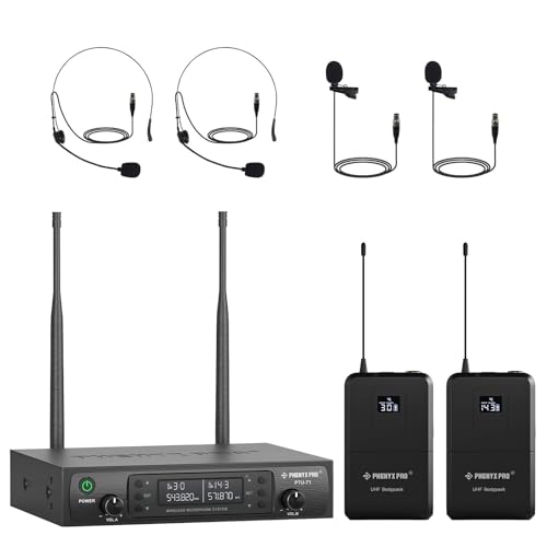 Phenyx Pro Wireless Microphone System, Auto Scan, Dual Wireless Mics,w/ 2 Handhelds, 2x100 UHF Frequencies,328ft Range,Dynamic Microphone for Church, Singing, Karaoke, (PTU-71-2H)