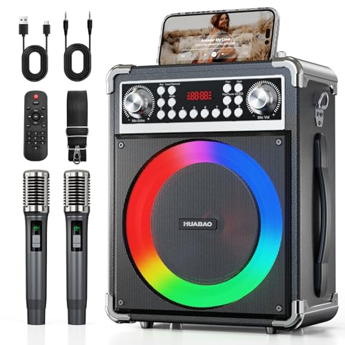 Karaoke Machine for Adults Kids with 2 Wireless Microphones, Portable Bluetooth Singing Speaker System with LED Lights for Home Party, Outdoor/Indoor/Wedding,Church,Picnic,Birthday Gifts (Black)