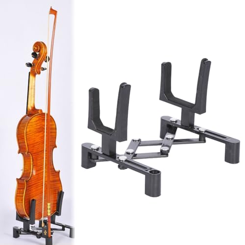 Violin Stand, Adjustable Height Violin Stand with Bow Holder, Aluminum Alloy Instrument Stand Ukulele Stand with Lock Buckle on the Top for Ukulele, Violin, Guitar