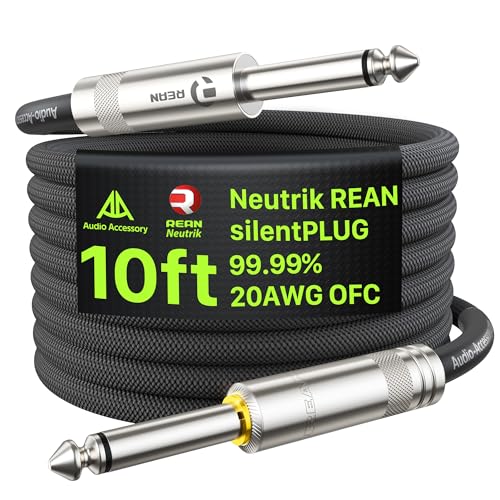 SRADIO Guitar Instrument Cable 10 Foot, AMP Cord Right Angle 1/4-Inch TS to Straight 1/4-Inch TS Guitar Cable 10FT with Red Tweed Cloth for Electric Guitar锛孊ass锛孠eyboard