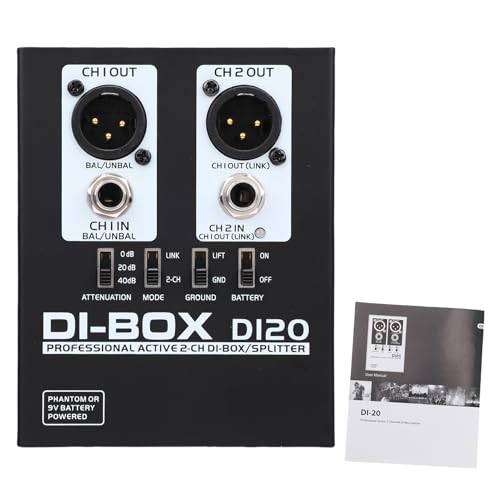 Bolanle D1 Premium Passive DI Box, Single Channel Direct Box with -15dB Pad, Ground Lift & Polarity Switch, XLR Thru Output for Guitar, Bass, Acoustic, Live Stage, Church