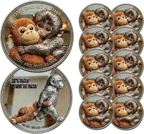 Emotional Support Monkey Coin, Punch Monkey Coin, Inspirational Challenge Coins with 鈥淥ne Day at a Time You are Not Alone鈥, Encouragement Gift for Friends, Family, Motivation Keepsake (10Pcs 01#)