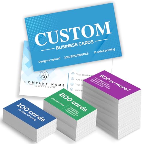 Custom Business Cards - 300gsm Matte Paper Waterproof Front & Back Printed 3.5x2 inch Customizable Logo/Text/QR Code 100/200/500/1000 Pcs