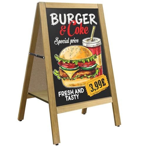 AKOZLIN Chalkboard Sign A-Frame 41"脳18" Magnetic Double-Sided Wooden Sandwich Board Sign Large Sturdy Freestanding for Wedding,Business,Restaurant