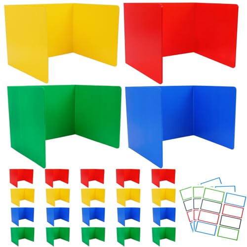 Elsjoy 8 Pack Student Desk Dividers with 16 PCS Sticker Labels, Plastic Study Carrel Divider Black Privacy Folders, Testing Dividers Classroom Privacy Shield for Student Desks