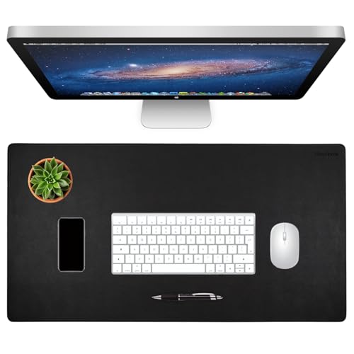 iCasso Large Mouse Pad and Keyboard Mat, XXL Desk Pad, Anti-Slip, Water-Resistant, Stitched Edges, Black