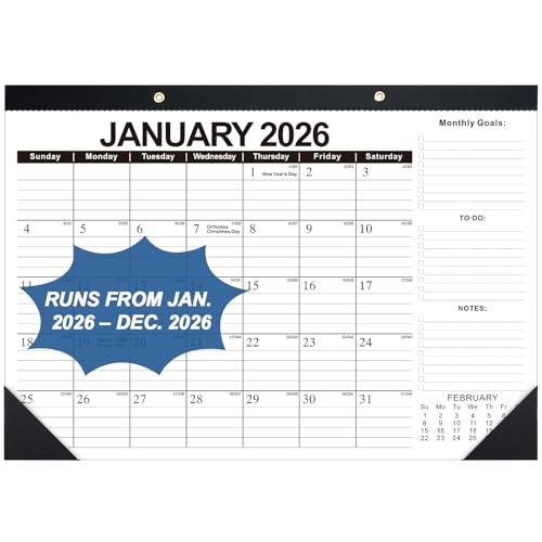 2026 Desk Calnedar: 12 Months Calendar Runs from JAN.2026 - Dec.2026, 17" x 12", Large Desk Calendar 2026 with Clear Waterproof Cover, Desk Top Calendar 2026 for Home Office Personal Organisers(Black)