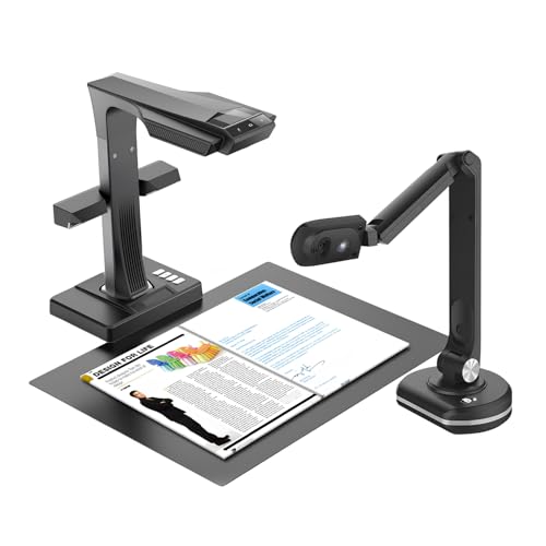 JOJOCY 12MP Portable Document Camera Scanner, A3/A4 Capture High-Res Scan Multilingual OCR (200+ Languages) USB Document Camera with Deskewing Pocket Book Scanner for Teachers & Office