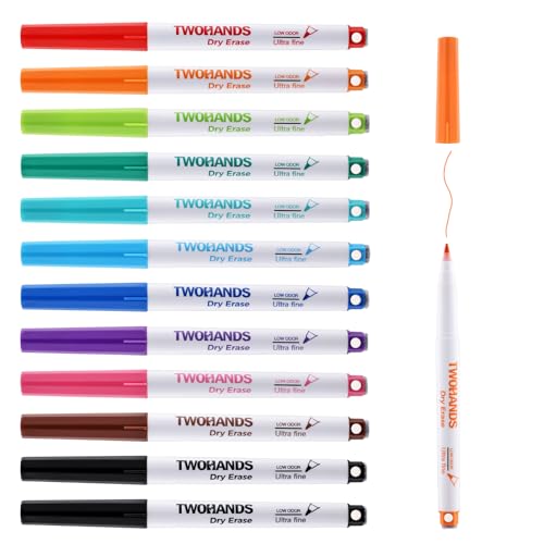 Volcanics Magnetic Dry Wipe Pens Dry Erase Markers Low Odor Fine Tip Whiteboard Pens Pack of 12,10 Colors